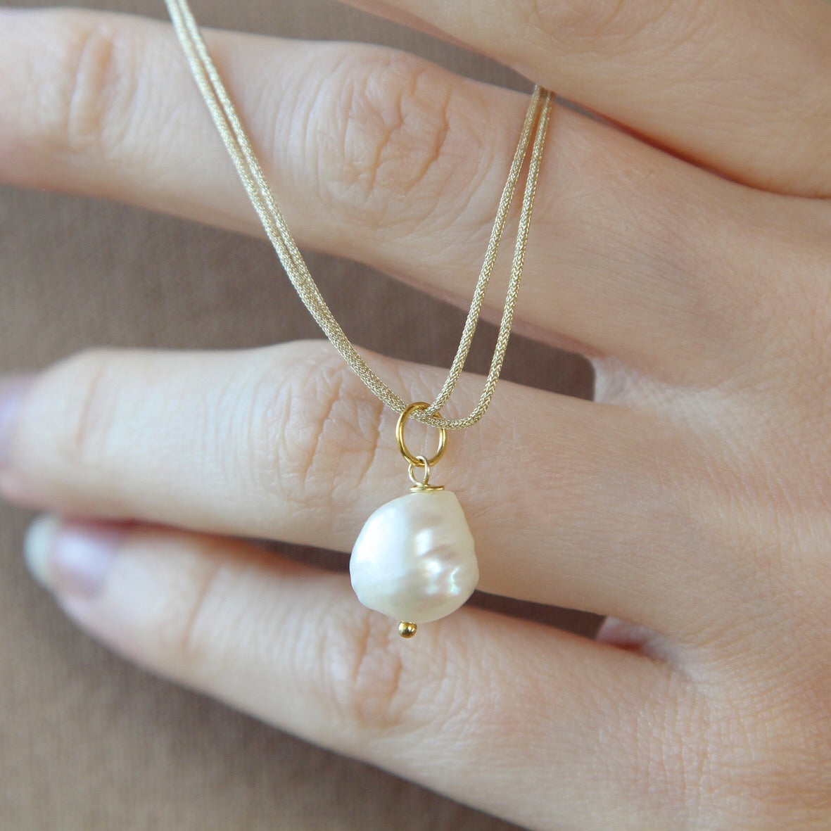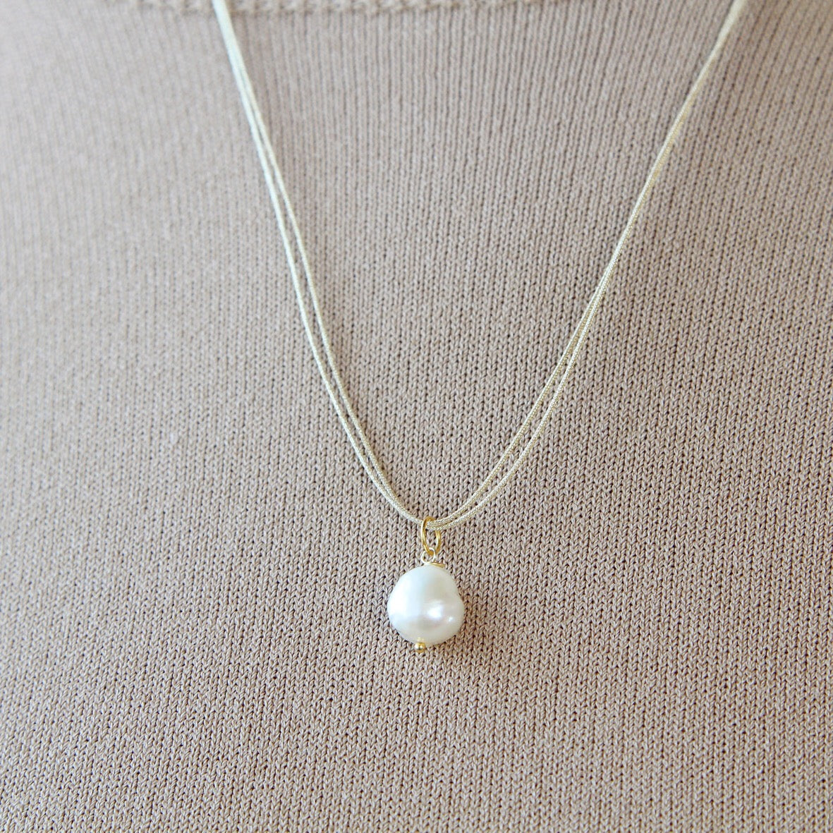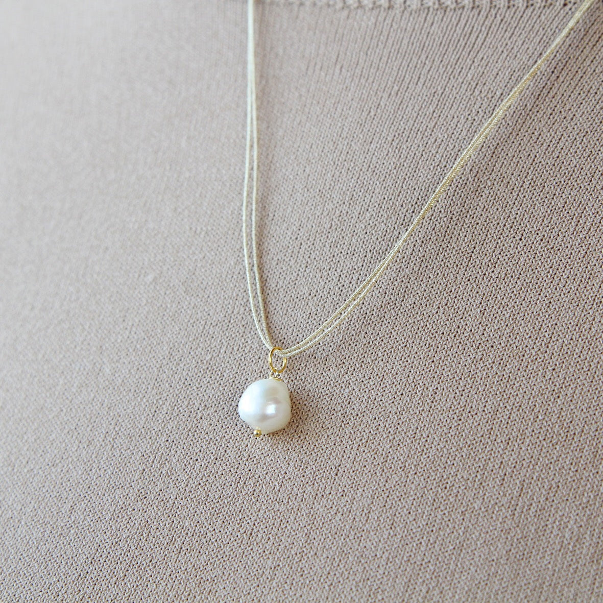 Materiali: cordino in tessuto argento o dorato, perla montata in argento.