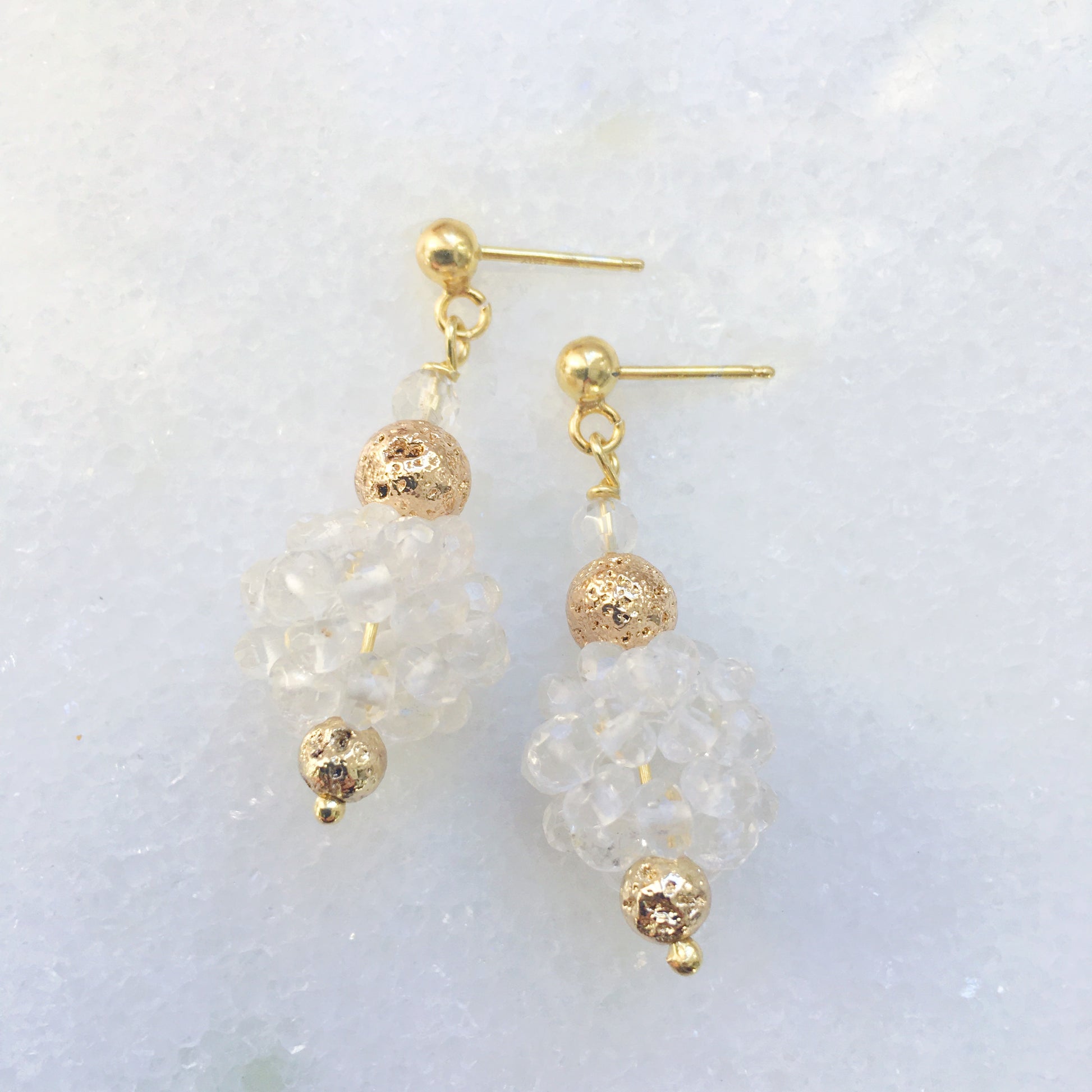 Li abbiamo impreziosite con una sfera di lava in bagno d’oro e un quarzo rosa.