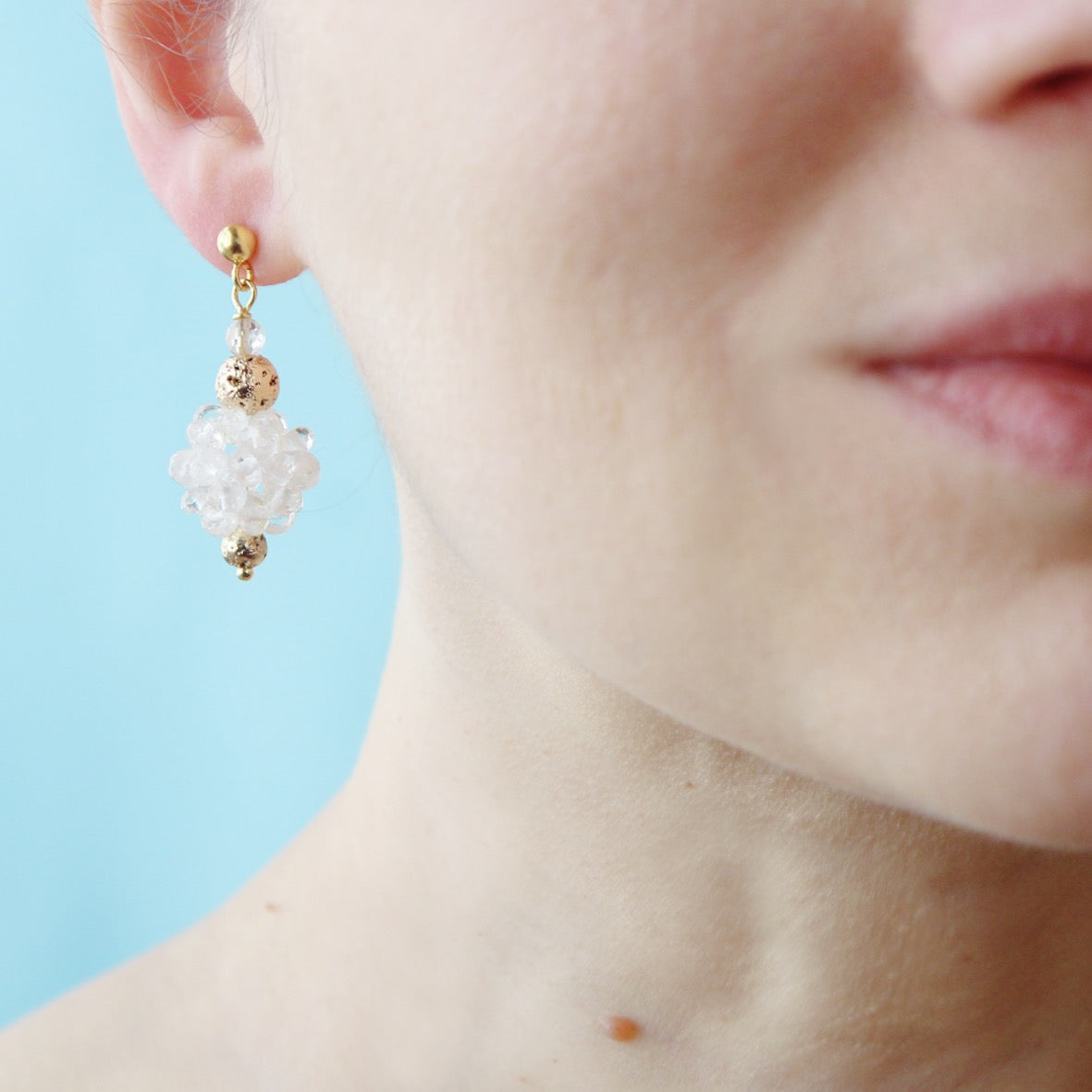 Deliziosi e leggeri orecchini con sfere di micropietrine di quarzo rosa.